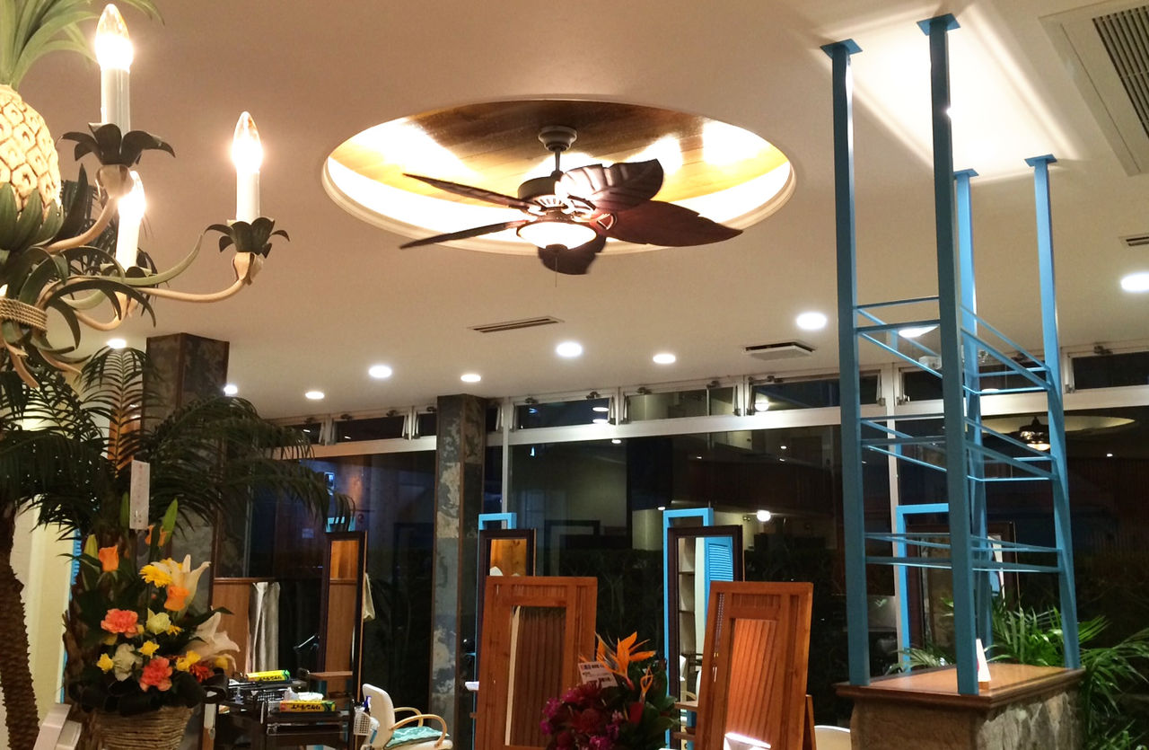 あまり大きく打ち出してはいないのですが、ハワイのシーリングファンショップの提携店となっているため、ご要望のシーリングファンがあれば、ご購入頂く事が可能です。