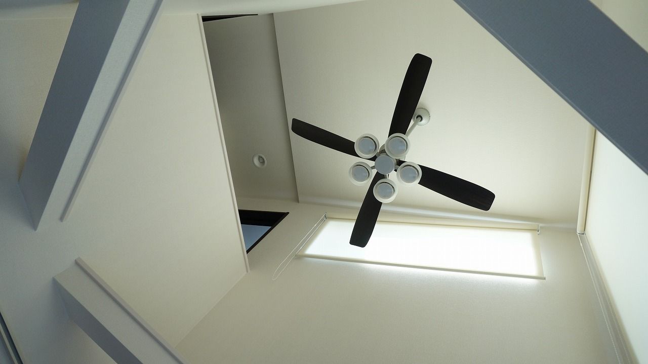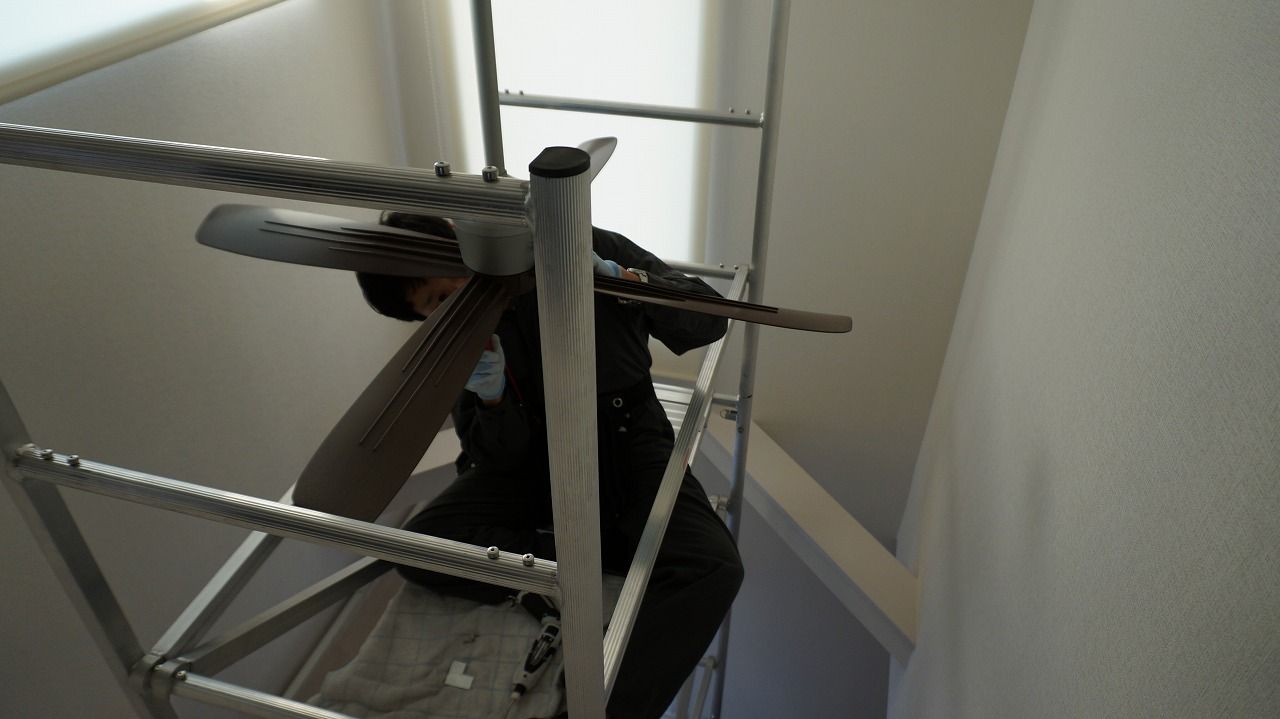 シーリングファンだけではなく、高所天井や吹き抜けの照明工事にお困りであれば、いつでもご相談くださいませ。